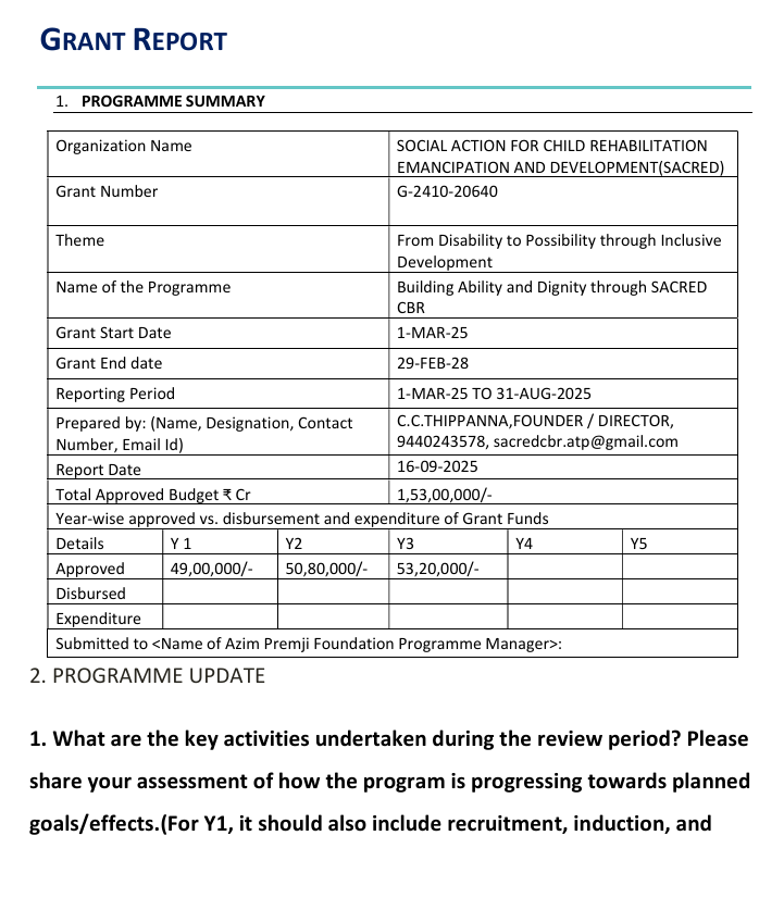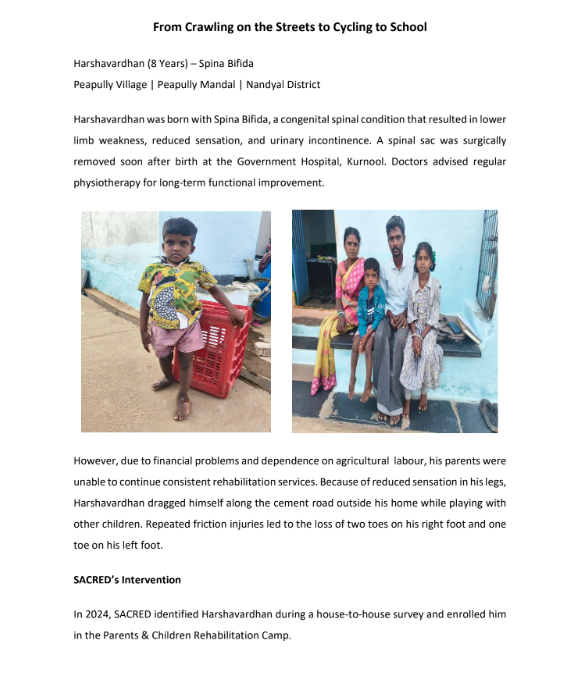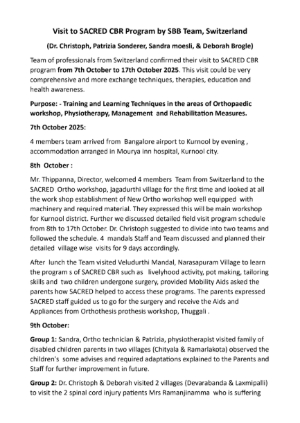 2.SACRED conducted Ortho Screening camp for physical disabled children’s by Specialist Doctors from Spain through RDT. Total 48 children Assed by Doctors and advised Surgical Correction for 16 children remaining children need POP, Physio therapy and Provide Aids & Appliances to improve their mobility. SACRED motivating and counseling to the Parents to Undergo surgical correction.